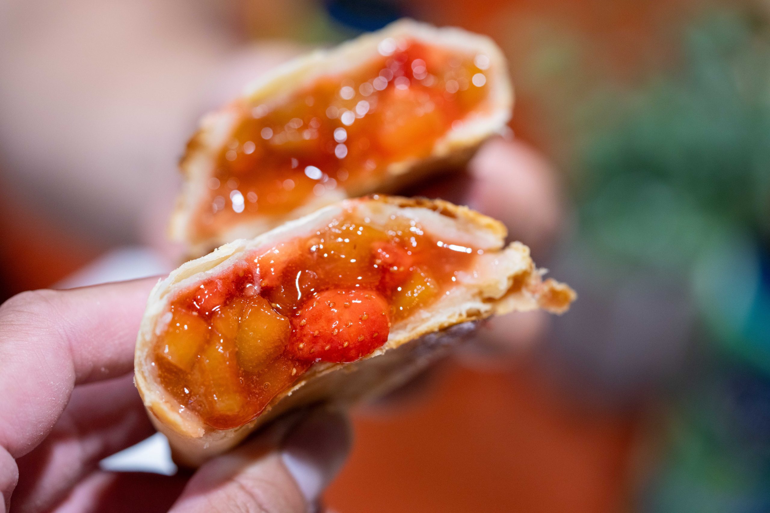 The filling? *Chef’s kiss*. Think a sweet, syrupy combo of wild strawberries, balanced out by the tartness of garden-grown rhubarb. We’re still not over it!