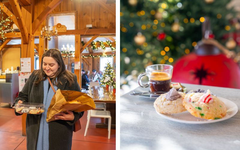 While browsing holiday decor and greens, treat yourself to a peppermint hot chocolate and something sweet like peppermint cheesecake topped with a candy cane or a frosted peppermint sugar cookie. It’s a delightful, festive pause that brings a burst of holiday spirit to your afternoon wander.