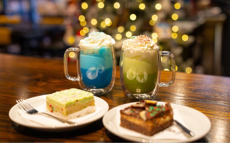 For the holiday season, the café serves up festive handcrafted coffee like the candy cane latte for a cheerful start to the day!